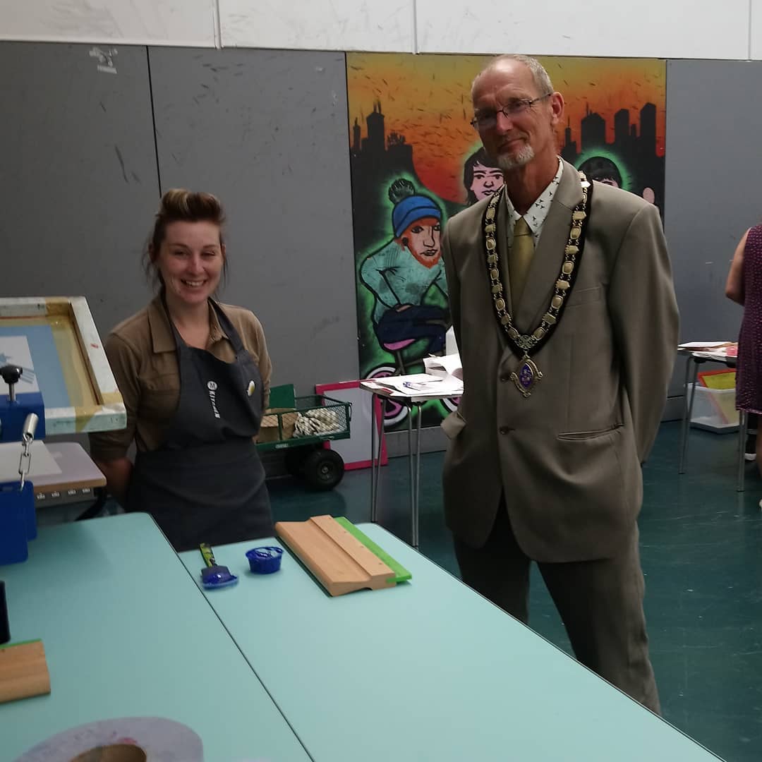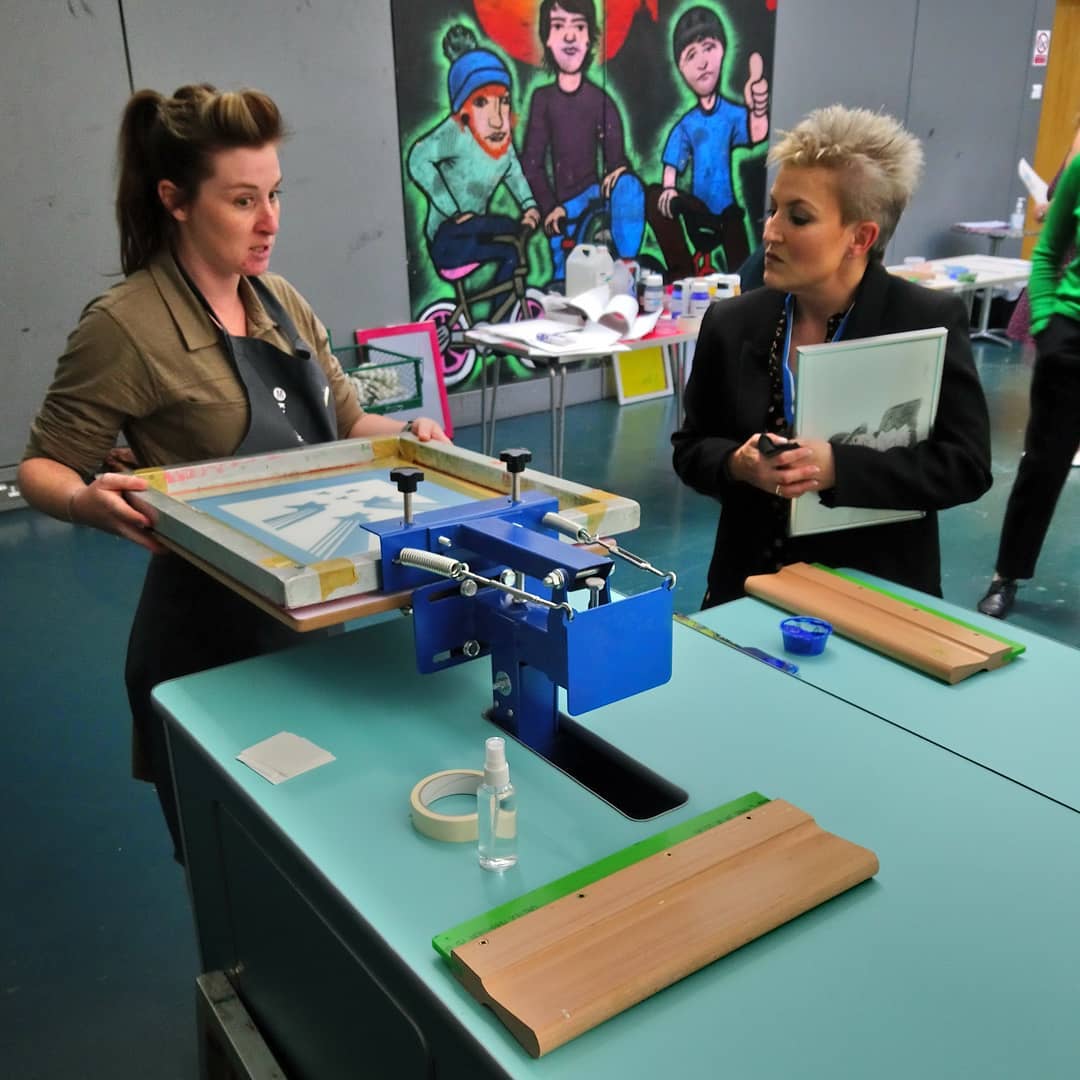 I ran a design workshop with clients and leaders at Designs in mind, Oswestry, a mental health charity. Together we came up with some initial ideas and specifications. During lockdown I finalised the designs and then went about creating the carts. Welded tubular steel frame with pneumatic tyres and articulated steering. Melamine faced poplar plywood shell with latching cupboard doors. The print trolley has a screen printing clamp and platten with a drop leaf table for drying prints. The shop has a folding display rack and folding table leaf.